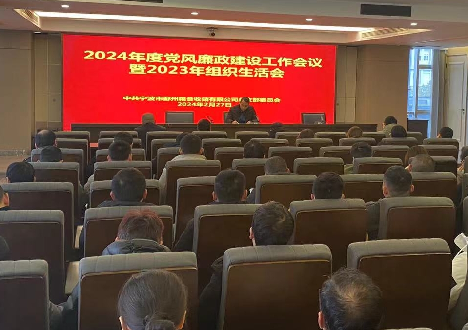 2月27日,鄞州糧食收儲有限公司召開(kāi)了2024年度黨風(fēng)廉政建設工作會(huì )議暨2023年組織生活會(huì )。會(huì )上總結2023年公司黨風(fēng)廉政建設工作情況,并安排部署2024年黨風(fēng)廉政建設工作,簽訂黨風(fēng)廉政責任狀,并觀(guān)看了警示教育專(zhuān)題片。